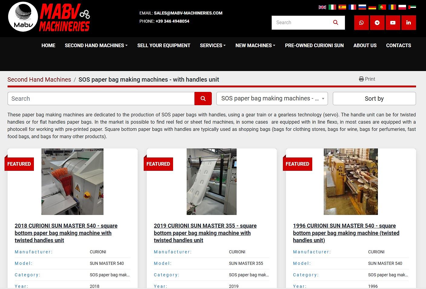 MABV MACHINERIES specializes in the sale and brokerage (business finding) of pre-owned industrial converting equipment.