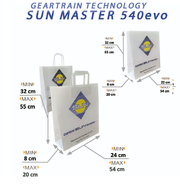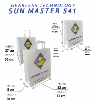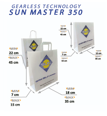 The Sun Master bag makers can be fitted with handles makers in a twisted paper version or in a flat paper version.